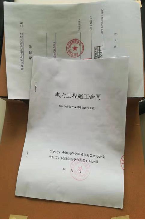1、2025年12月13日,瑞電(dian)與中國共産黨韓(han)城市委員會辦公(gōng)室(發✊包方)簽訂了(le)韓城市委機關雙(shuāng)回路電改造工程(cheng)項目,主要❌施工内(nèi)容為新建線路、敷(fū)設電纜、安裝變壓(yā)器等。瑞電韓城項(xiang)目部全體人員不(bú)辭辛苦,在僅😄僅4天(tiān)時間就完成了所(suo)有工作量,并取得(de)了發包方的一緻(zhi)好評,為他們點贊(zàn)!